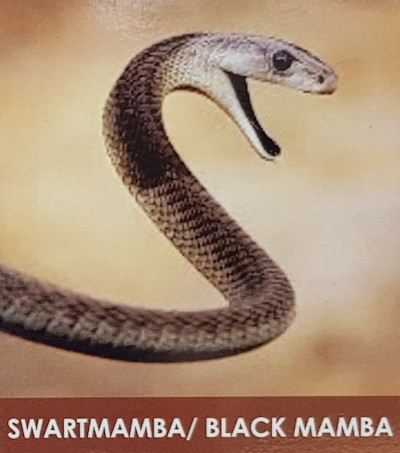 Elapidae: swart- en groenmambas, rinkhals, geelkobra, Mfesi.